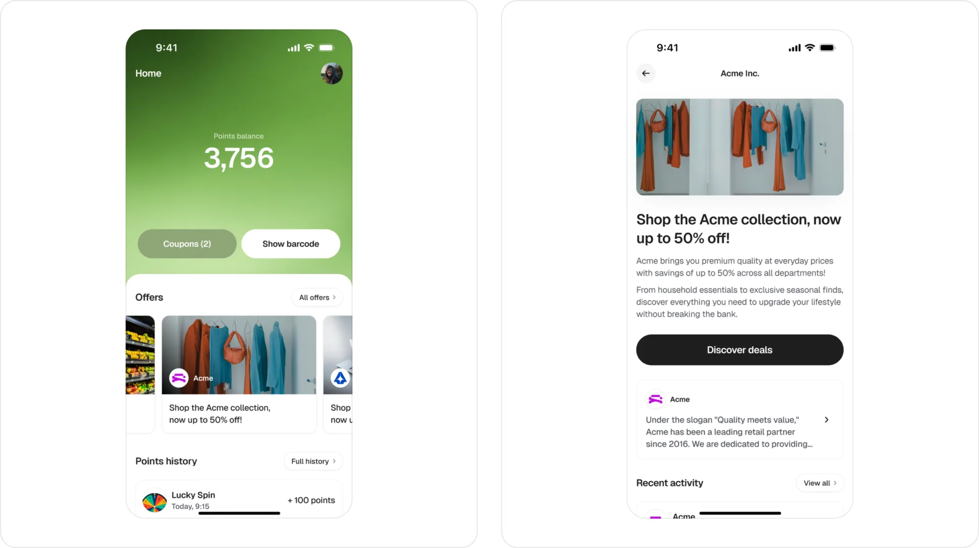 Led the design from 0 to 1 for a loyalty app that rewards you for every purchase at your favorite stores.